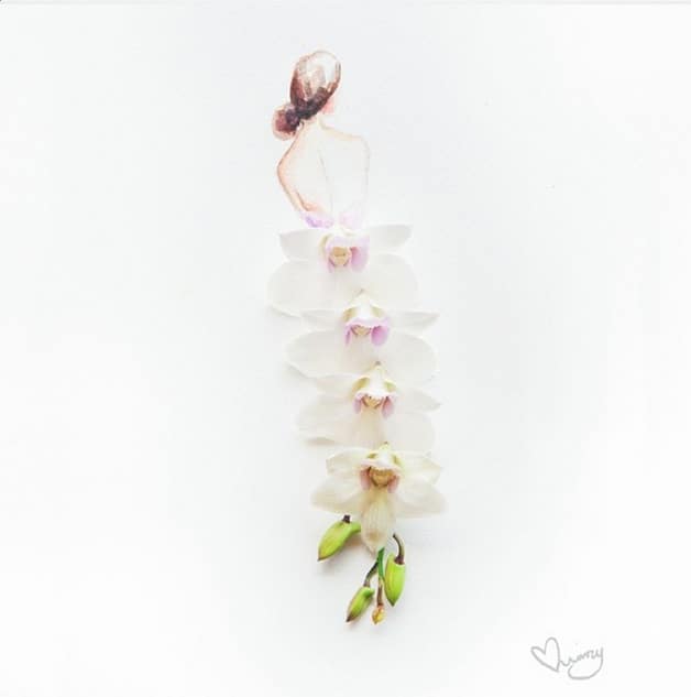 Lim Zhi Wei é uma artista da Malásia, que vive em Singapura. Além da aquarela, ela utiliza ramos de flores como instrumento de trabalho para formar figuras femininas.