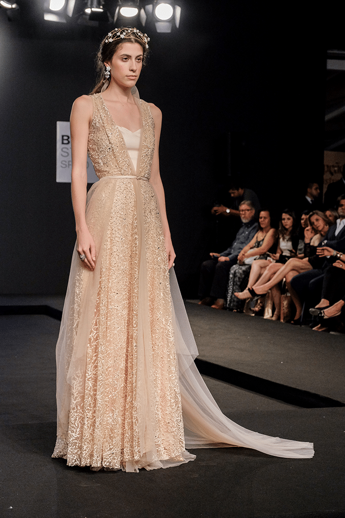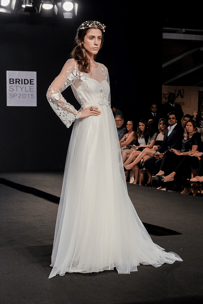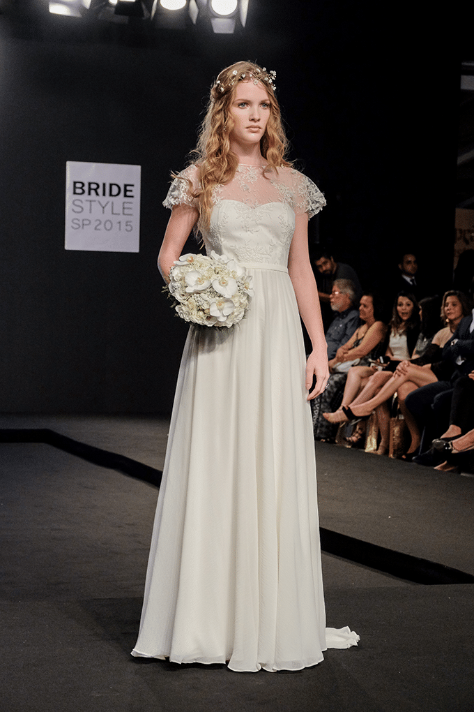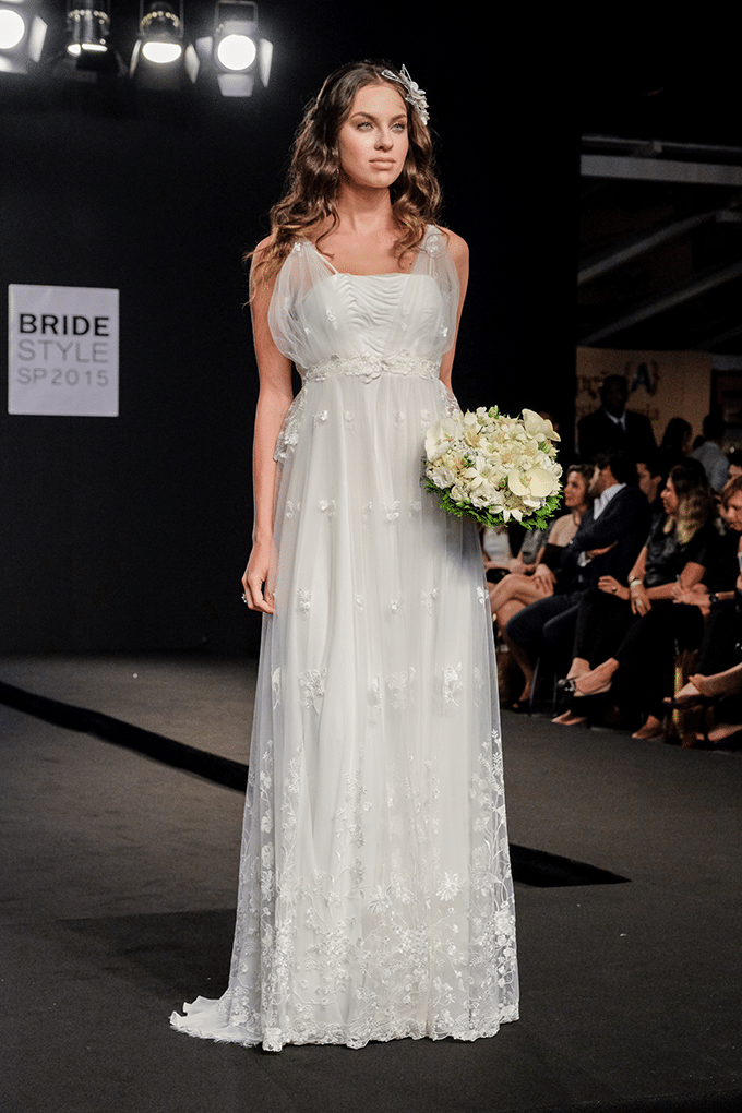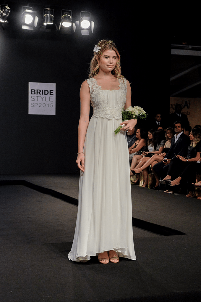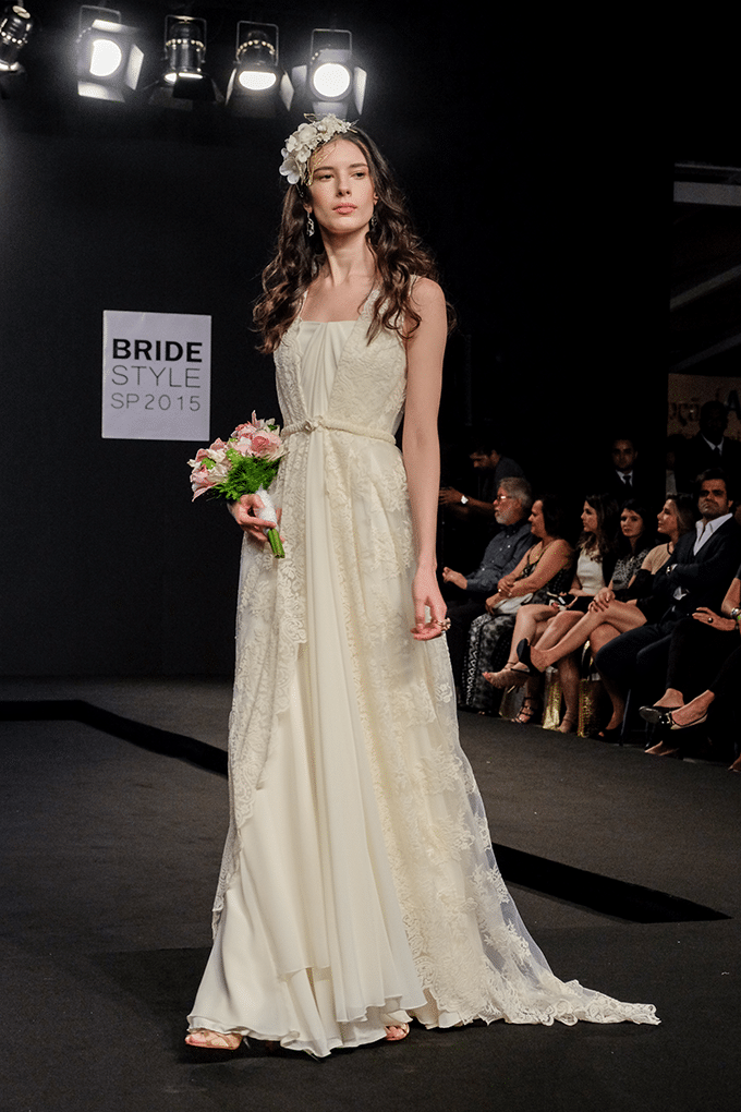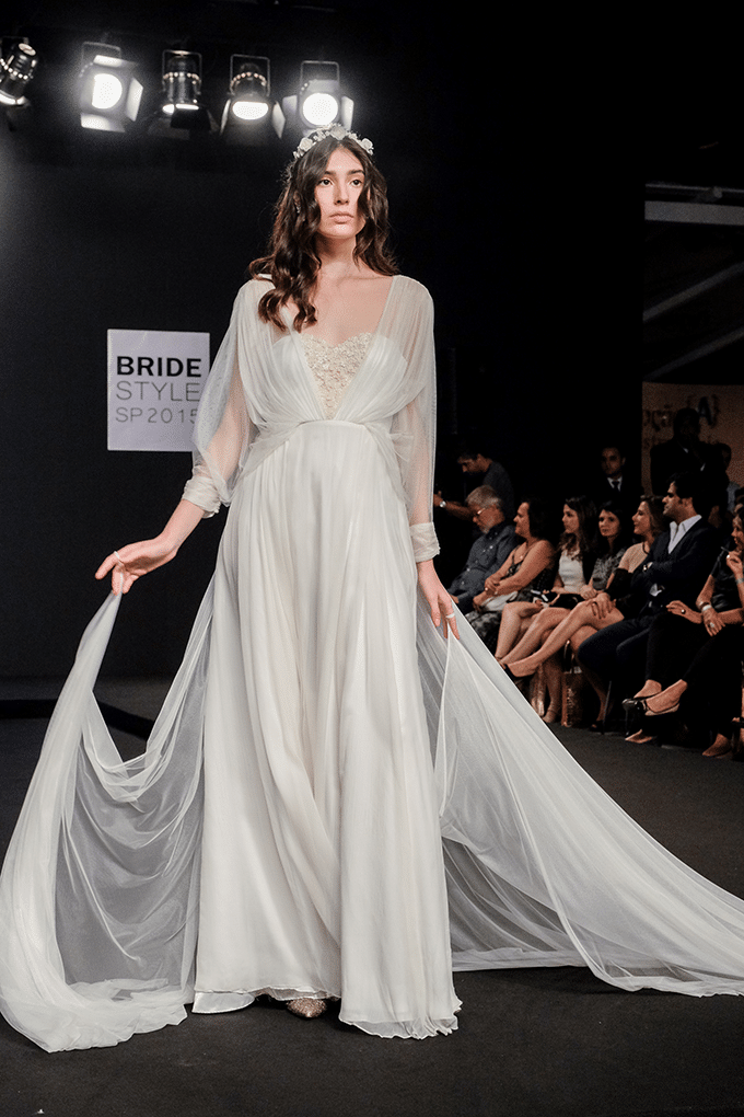 Karen Rodrigues lançou sua coleção “Deusas do Amor” no Bride Style 2015, trazendo em suas composições a delicadeza e a fluidez dos materiais. A cartela de cores misturou tons de off white a rosados.